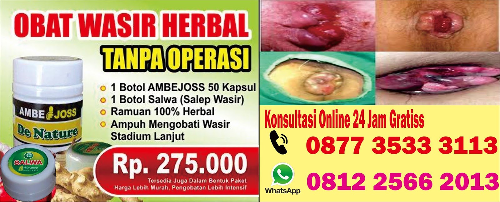 Wasir atau ambeien eksternal adalah hemoroid yang muncul di bagian bawah kanal anus, dekat lubang anus. Di area ini, saraf untuk rangsang nyeri cukup banyak. Hemoroid ini terasa gatal dan juga bisa berdarah dan menggumpal di bawah kulit. Ini menimbulkan benjolan yang keras dan menyakitkan.Konsultasi dan Pemesanan Obat Hubungi Whatsapp : 081225662013 / Telp : 087735333113